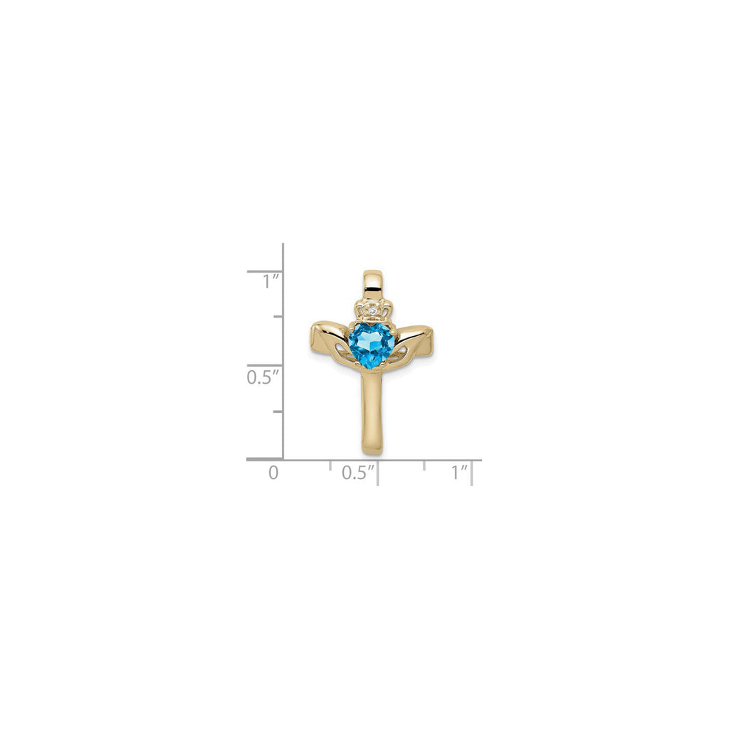 Blue Topaz Claddagh Cross Pendant (14K)