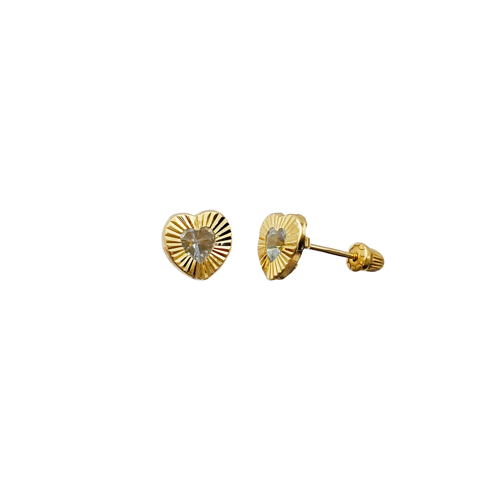 Fluted bezel Cubic Zirconia Heart Stud Earrings (14K)