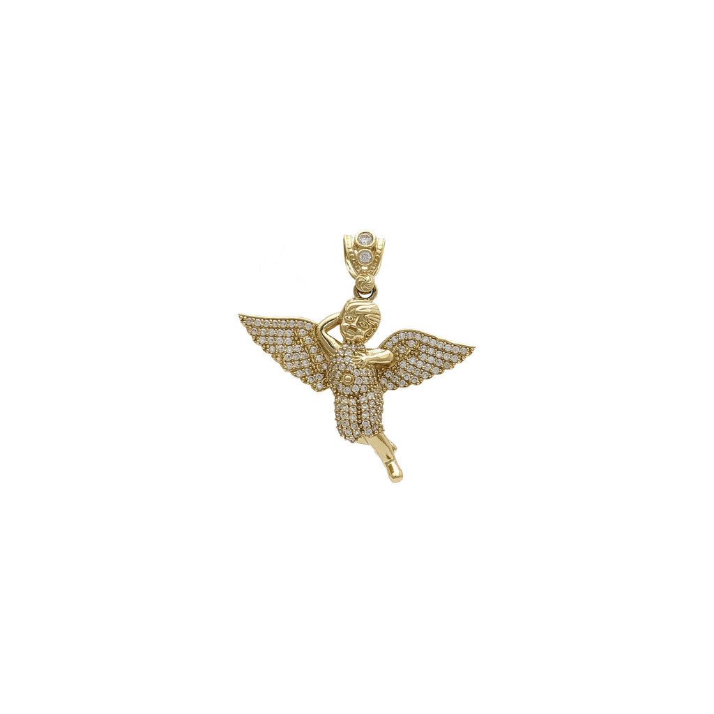 CZ Iced-Out Angel Pendant (14K)