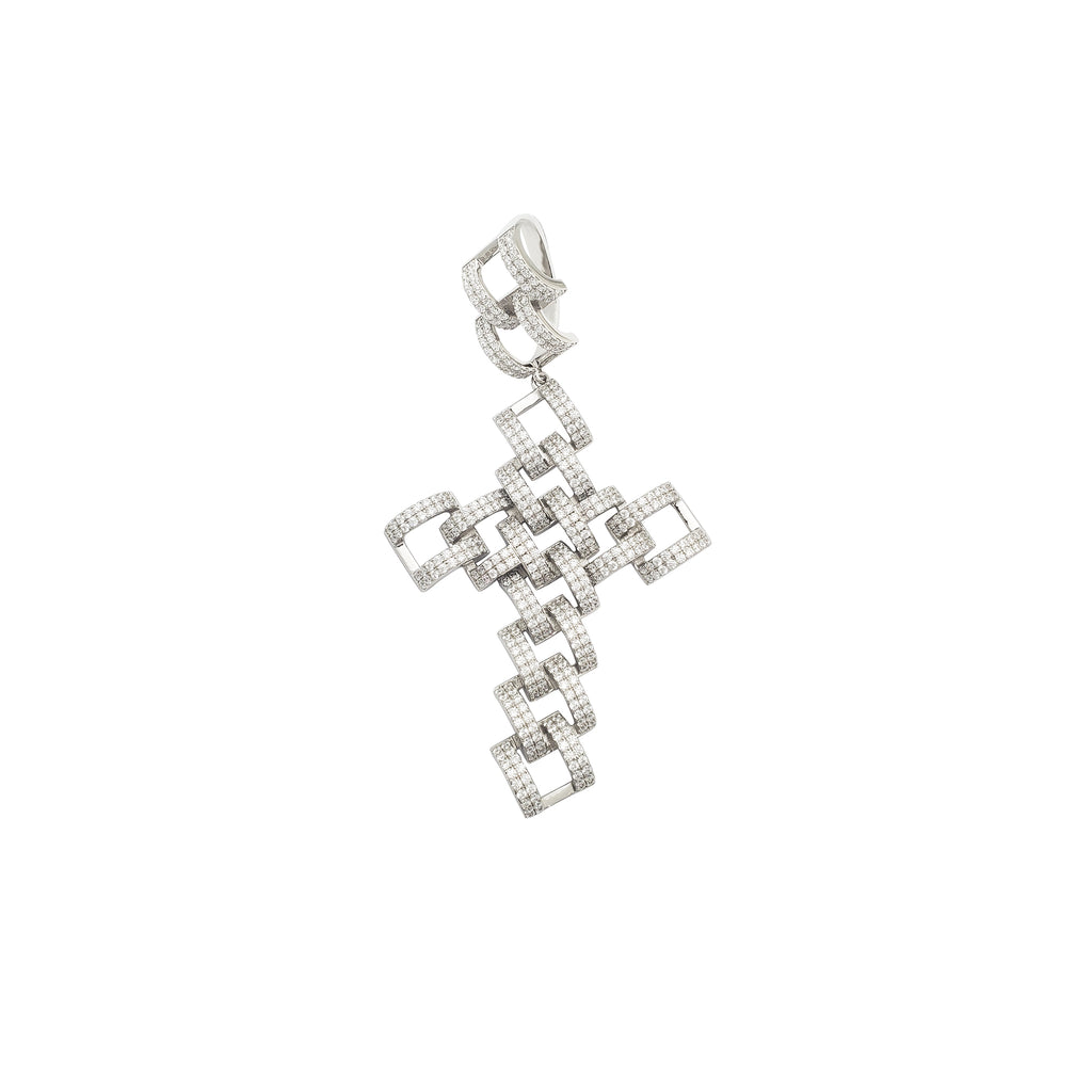 Iced-Out Wicker Cross CZ Pendant (Silver)