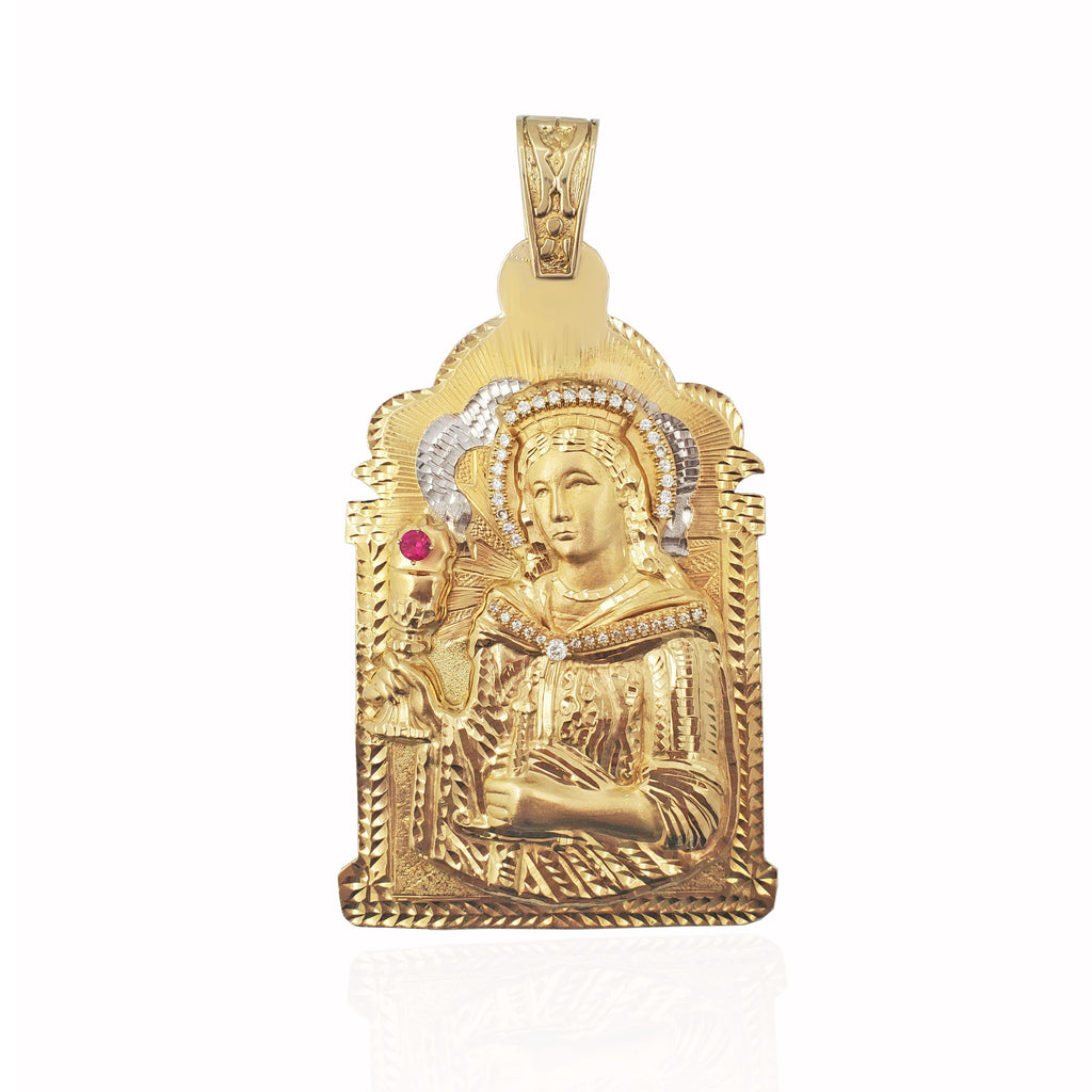 Two-Tone Saint Barbara CZ Pendant (14K).