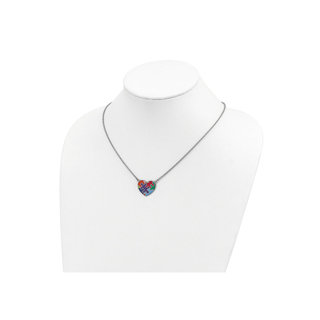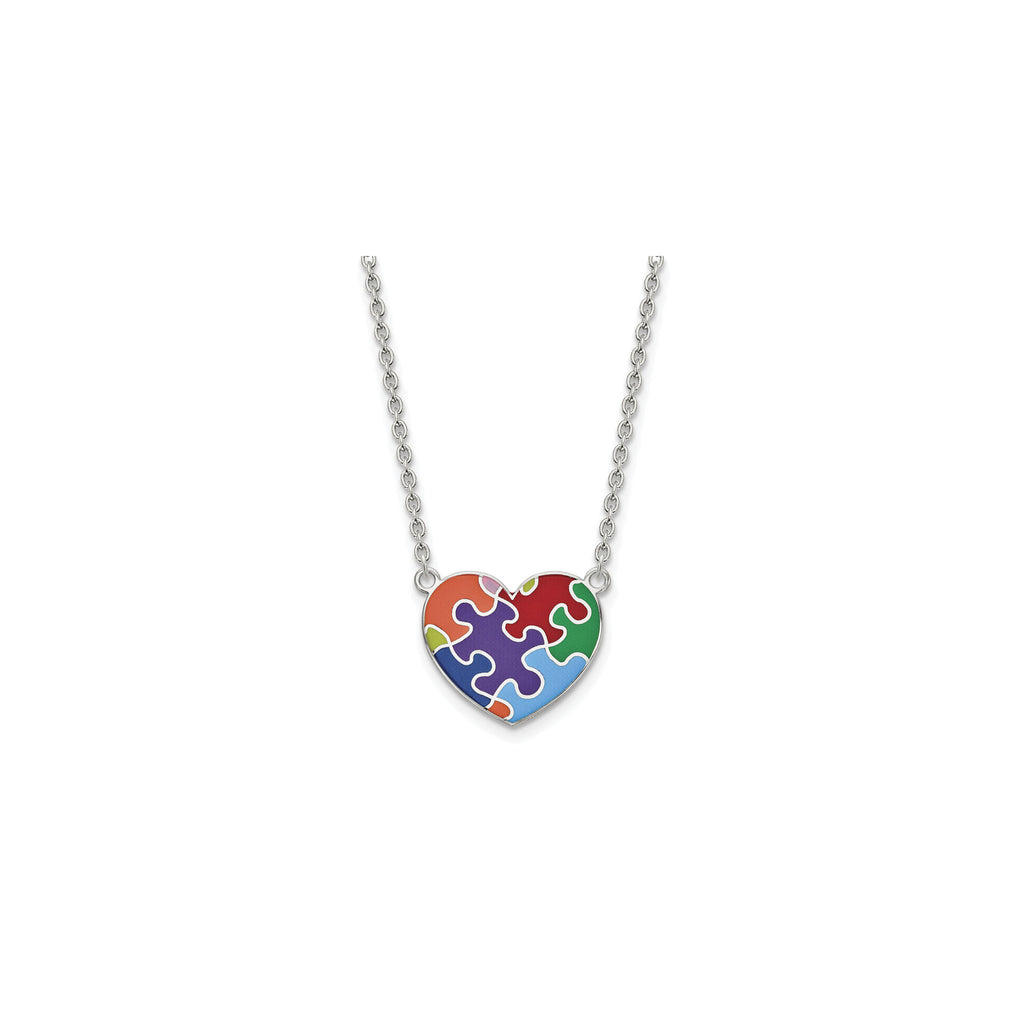 Enameled Autism Puzzle Heart Necklace (Silver)