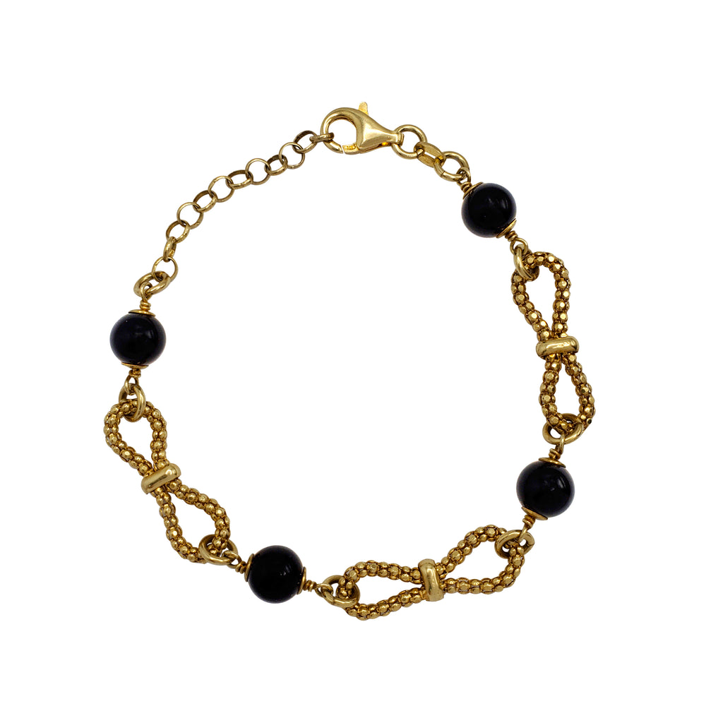 Popcorn Link Onyx Bowtie Bracelet (Silver)