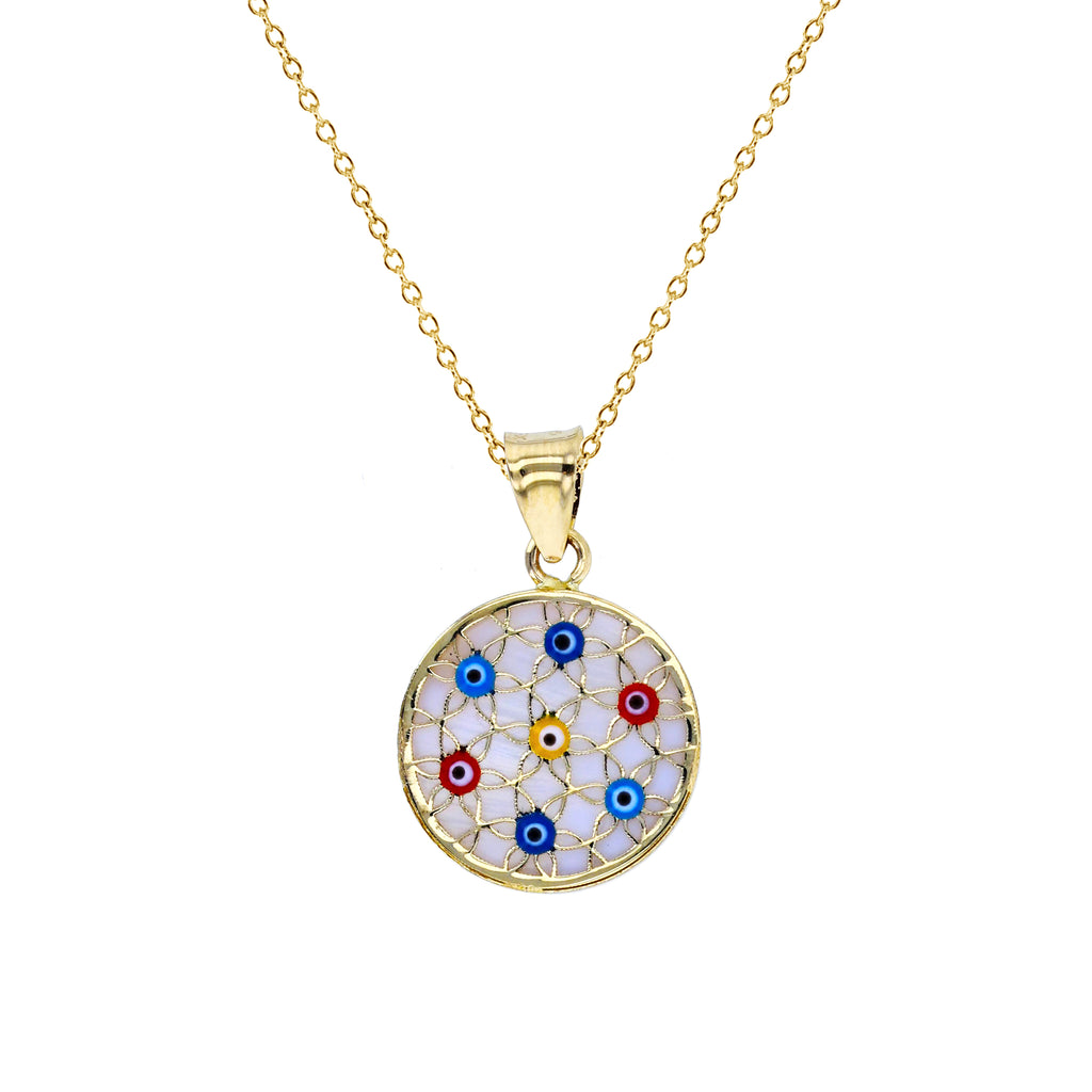 Enameled-Evil Eye Medallion Fancy Necklace (14K)