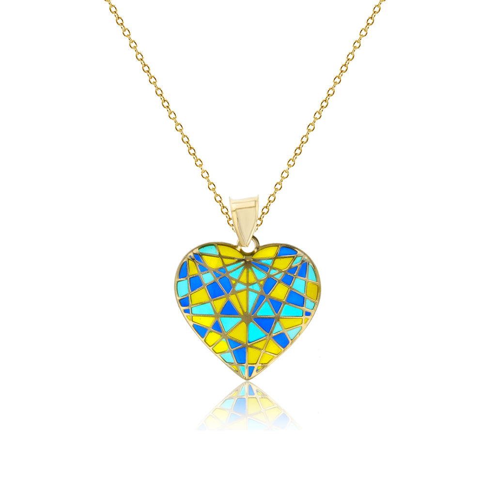 Enameled-Mosaic Heart Fancy Necklace (14K)