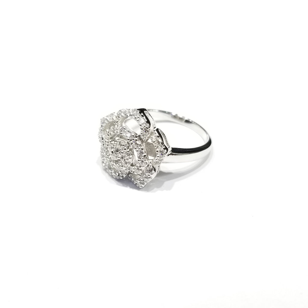 This is a brilliant flower spiral ring made out of cubic zirconia stones.