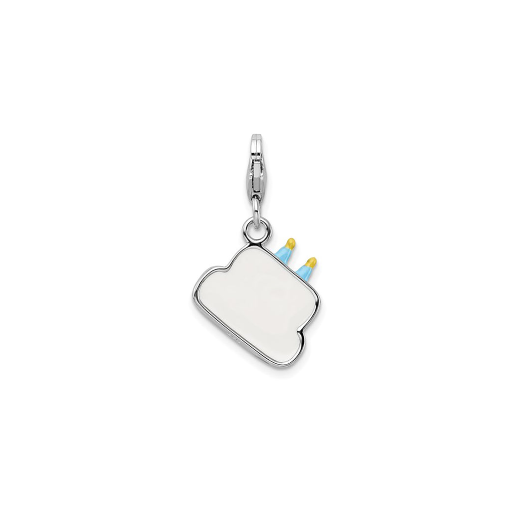 Enameled Brown Birthday Cake Charm Pendant (Silver)