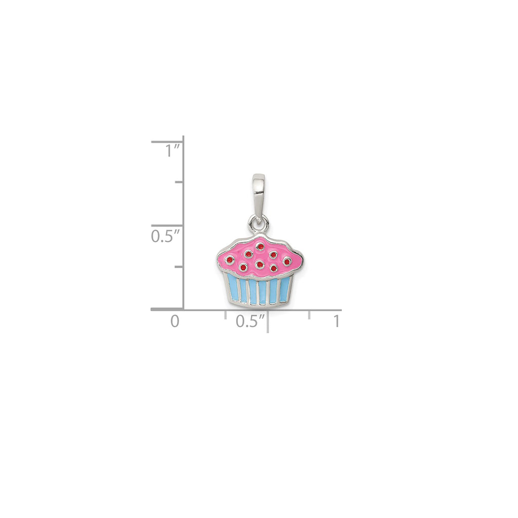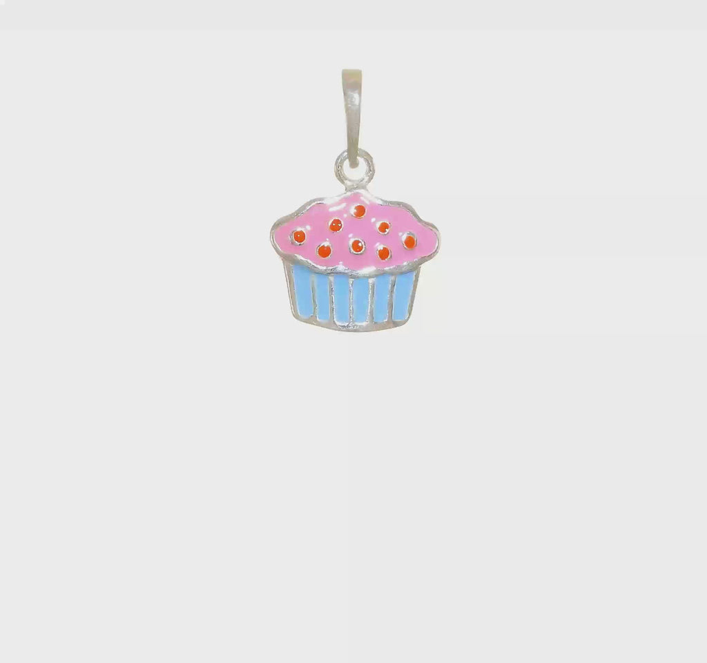 Enameled Pink Fuchsia Cupcake Pendant (Silver)