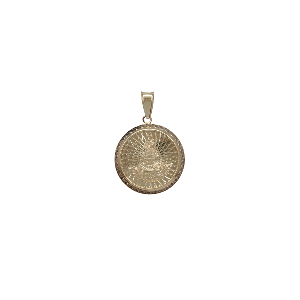 Cubic Zirconia Round " Our Lady of Charity " Pendant (14K)