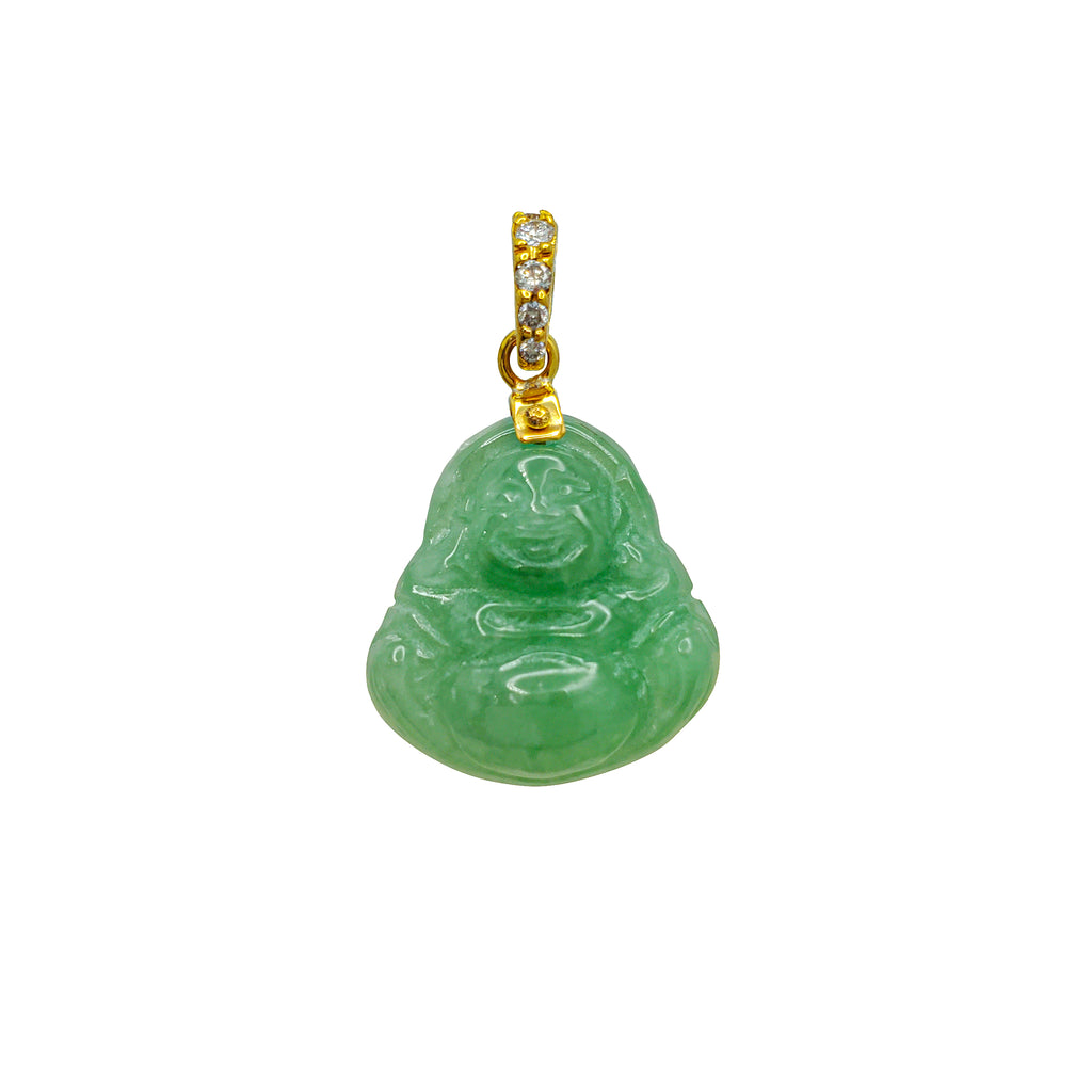Diamond Light Green Jade Laughing Buddha Pendant (14K)