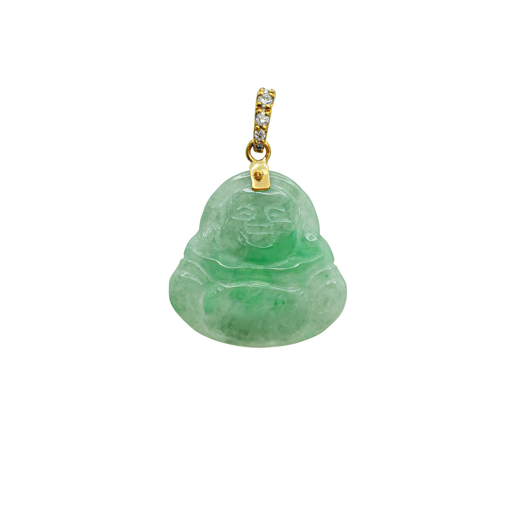 Diamond Light Green Jade Laughing Buddha Pendant (14K)