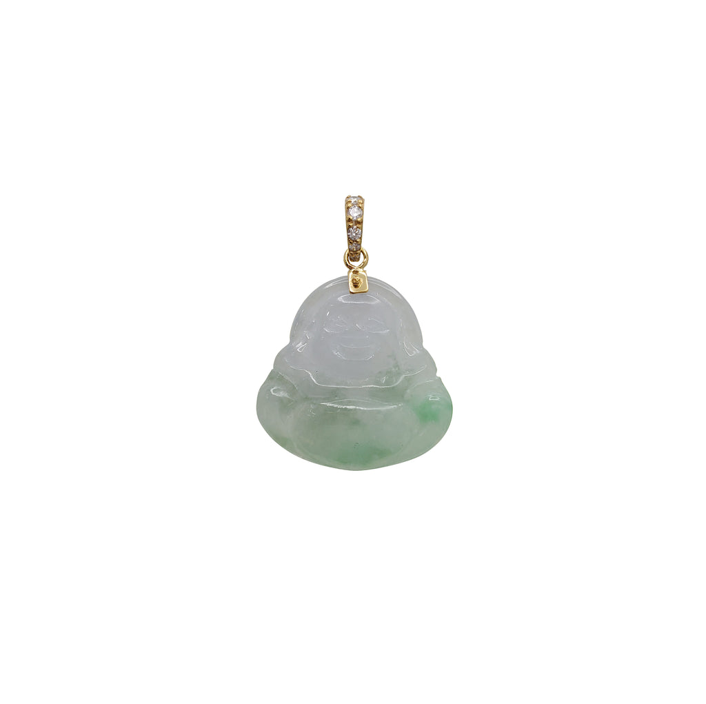 Diamond Light Green Jade Laughing Buddha Pendant (14K)