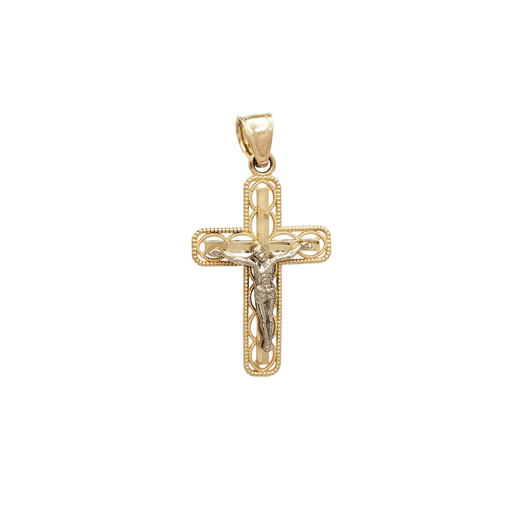 Two-Tone Milgrain Wire Frame Crucifix Pendant (14K)