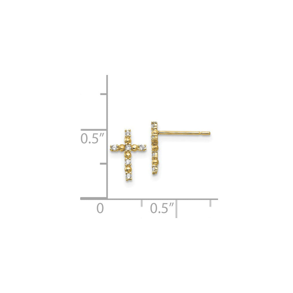 Petite White CZ Beady Cross Stud Earrings (14K)