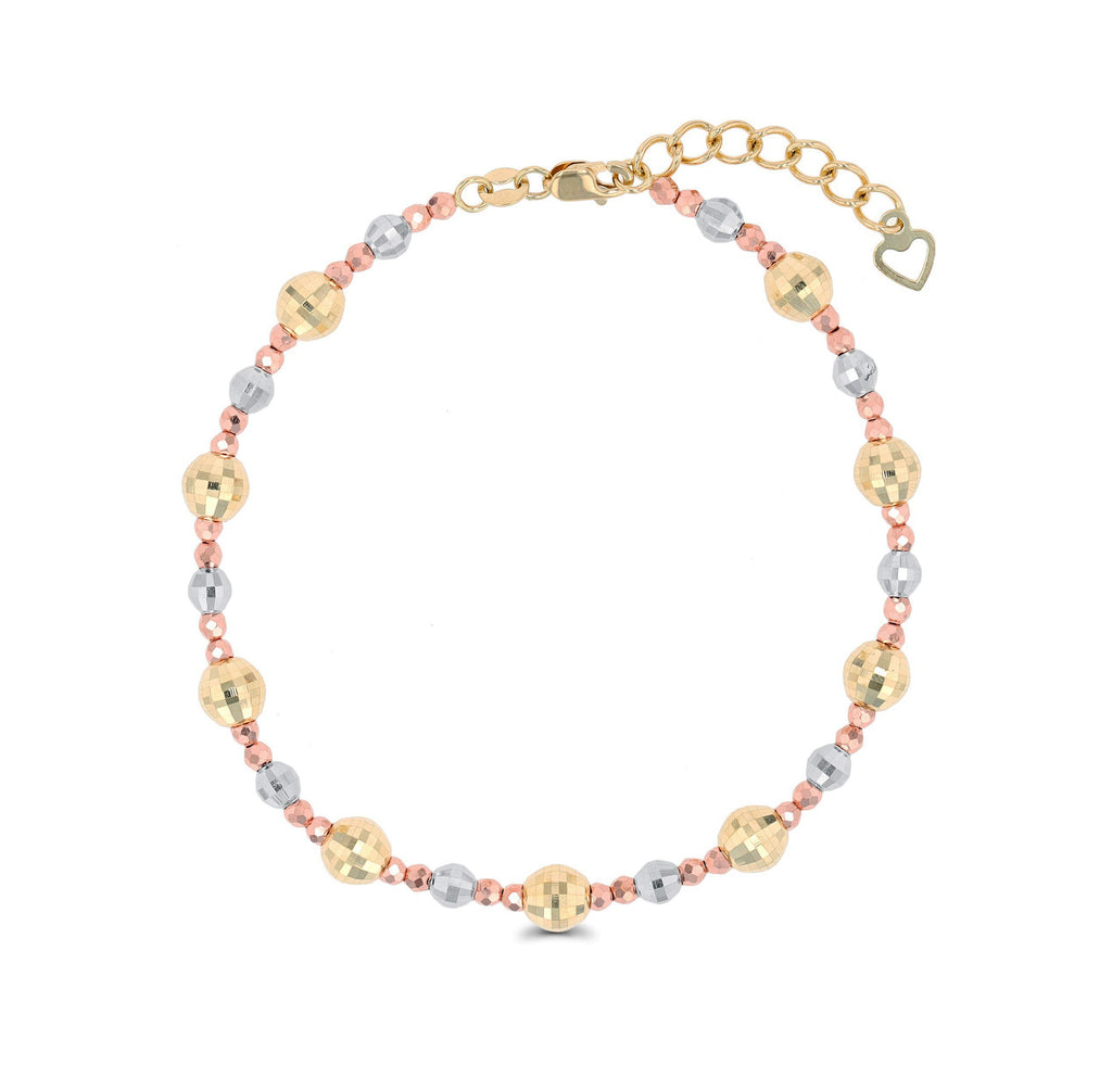 Tricolor Diamond Cut Beaded Bracelet (14K)