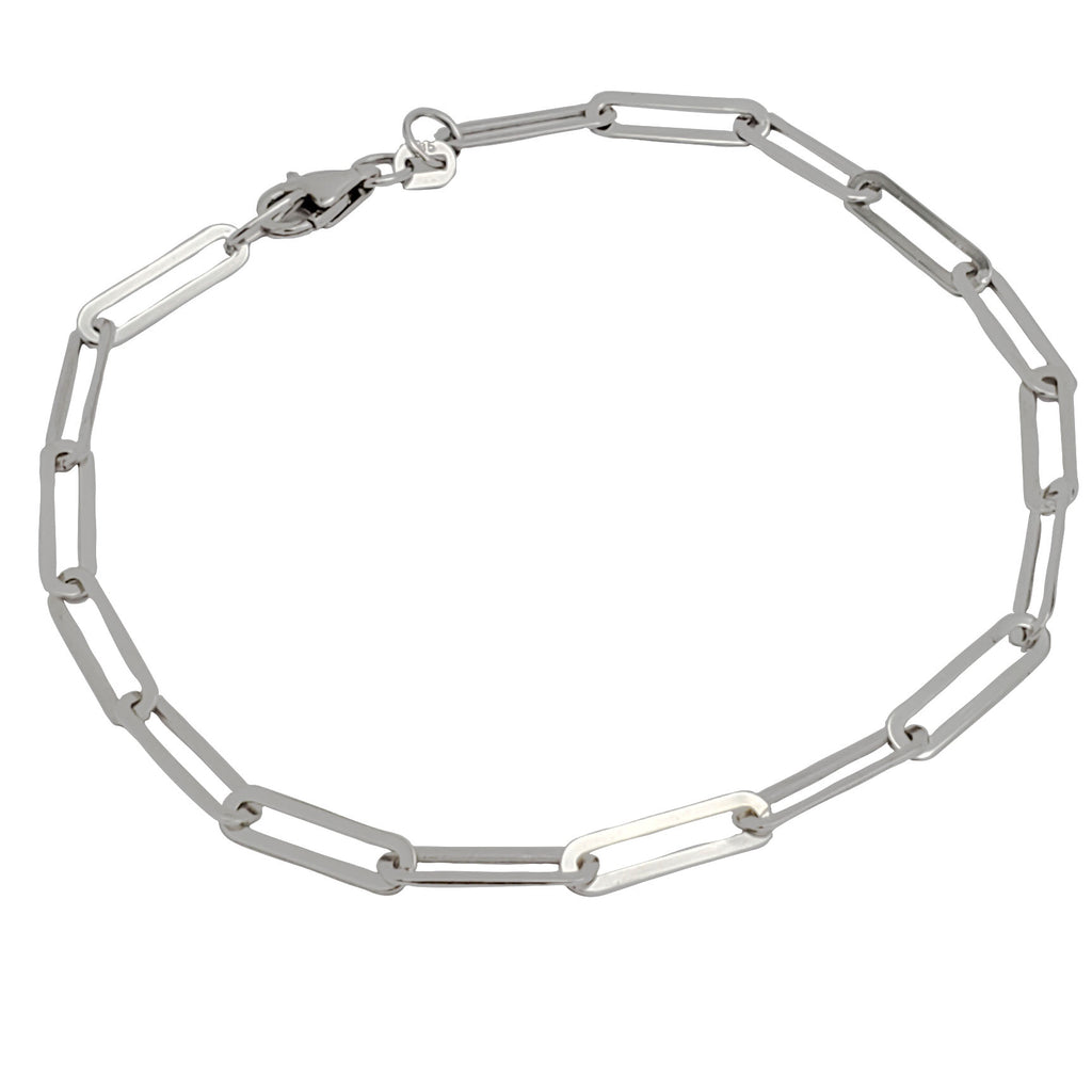 Slim Flat Elongated Paperclip Link Bracelet (14K).