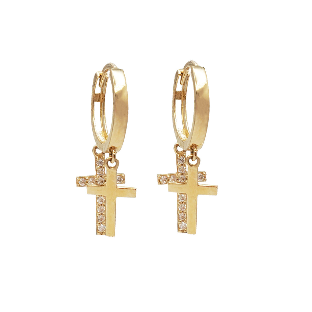 Zirconia Double Cross Dangling Earrings (14K)