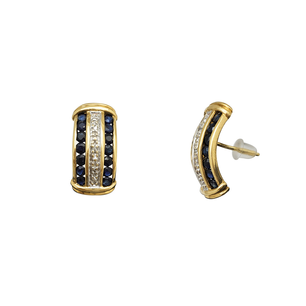Channel-Set Diamond & Sapphire Stud Earrings (14K)