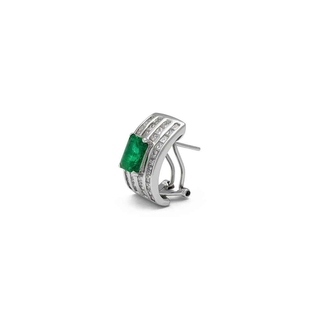 Diamond Stanchion Emerald Huggie Earrings (18K)