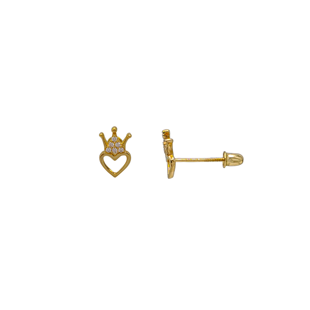 Heart Crown CZ Stud Earring (14K)