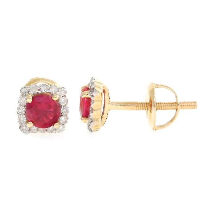 Solid Gold Ruby & Diamond Halo Stud Earrings ( 14k )