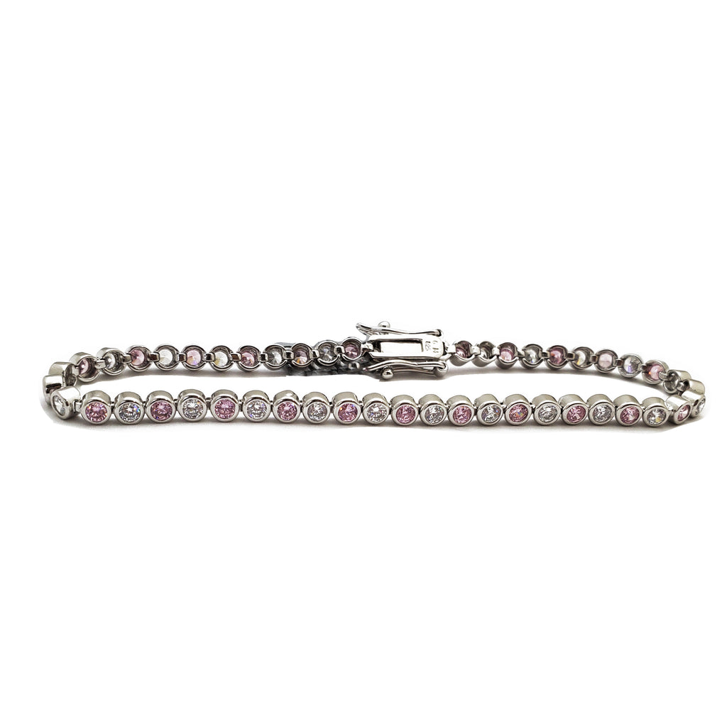 Light Pink & White Tennis Bracelet (Silver)