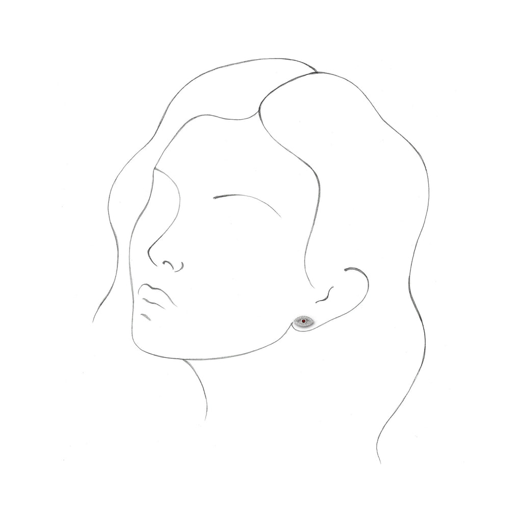 Mozambique Garnet and White Diamond Evil Eye Stud Earrings