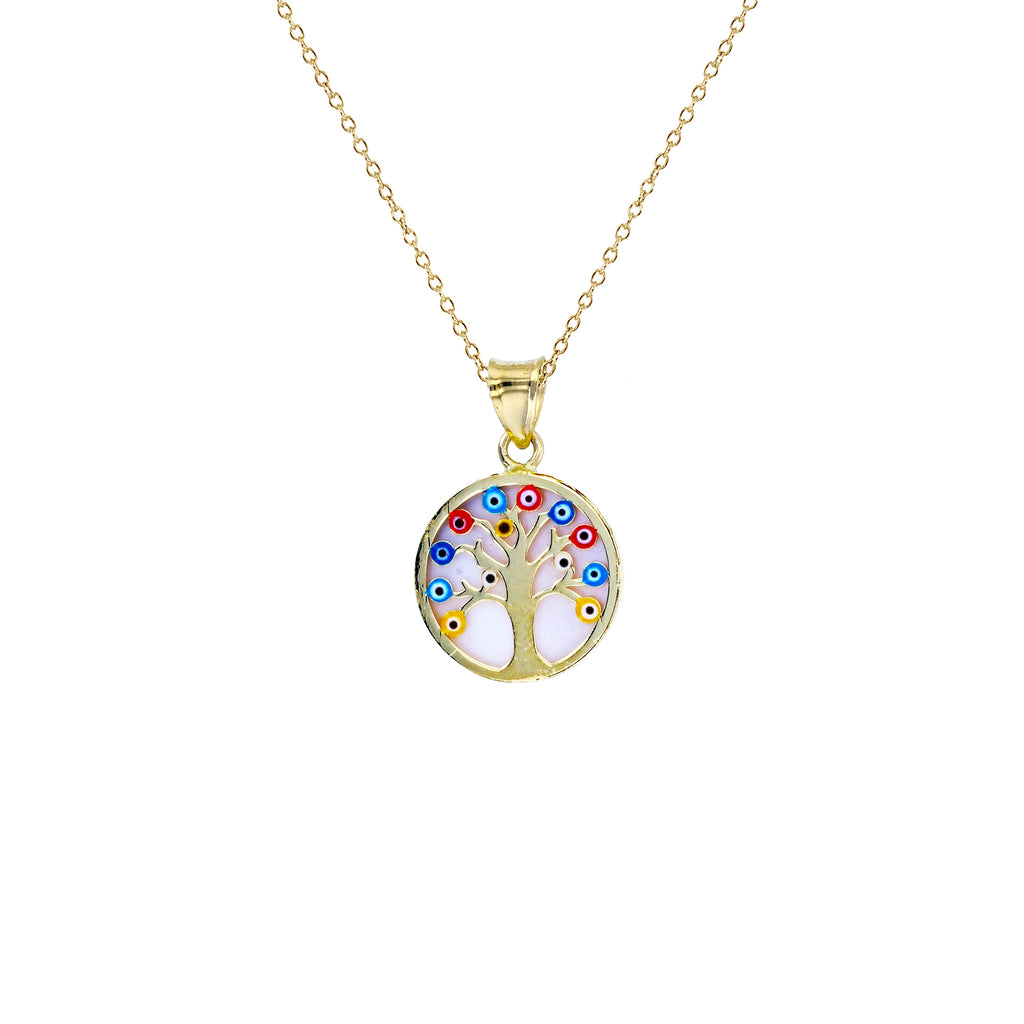 Mother of Pearl Evil Eyes Tree of Life Fancy Necklace (14K)