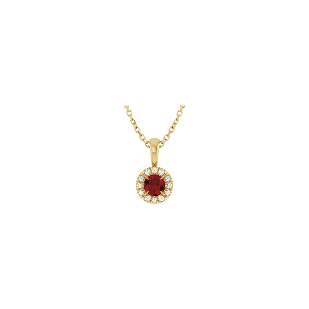 Natural Round Mozambique Garnet and Diamond Halo Necklace