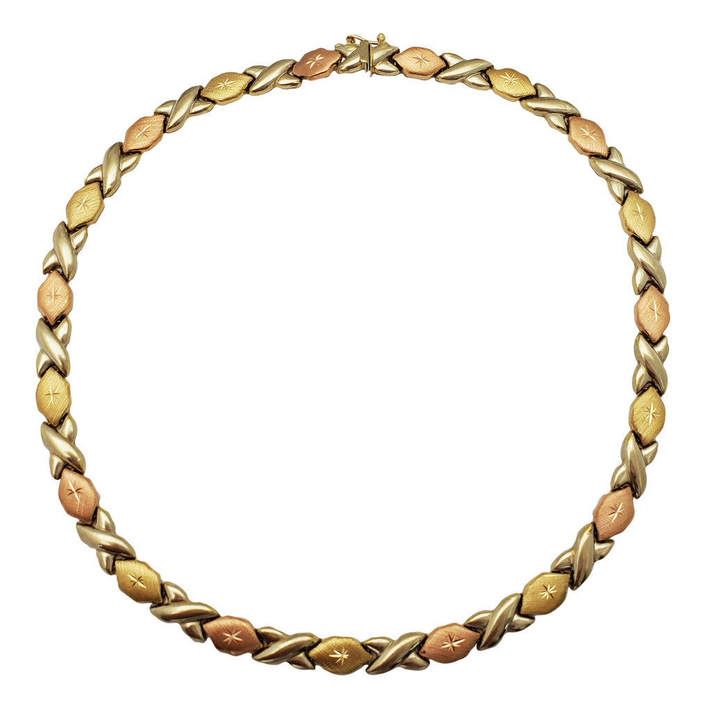 Tri-Tone Sand Finish "XO" Fancy Necklace (14K)