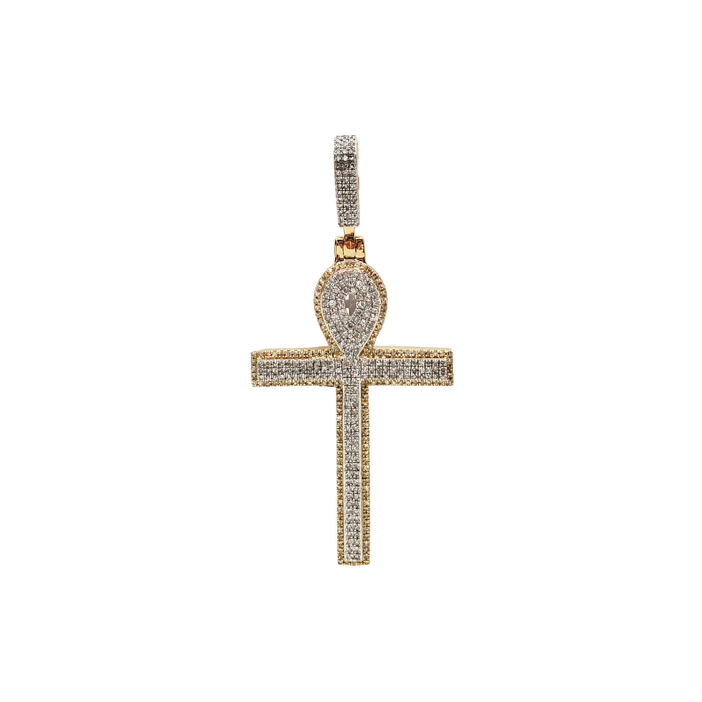 Diamond Two-Tone Ankh Cross Pendant (14K)