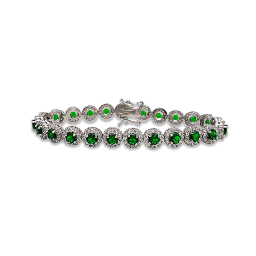 Green Zirconia Halo Round Tennis Bracelet (Silver)