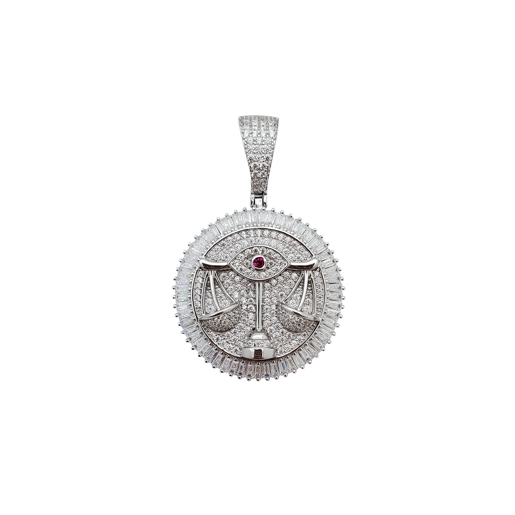 Zirconia Red-Eye Libra Zodiac Sign Pendant (Silver)