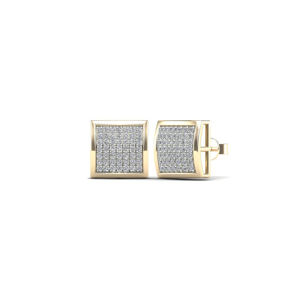 Yellow Gold Diamond Square Dome Stud Earrings (14K)