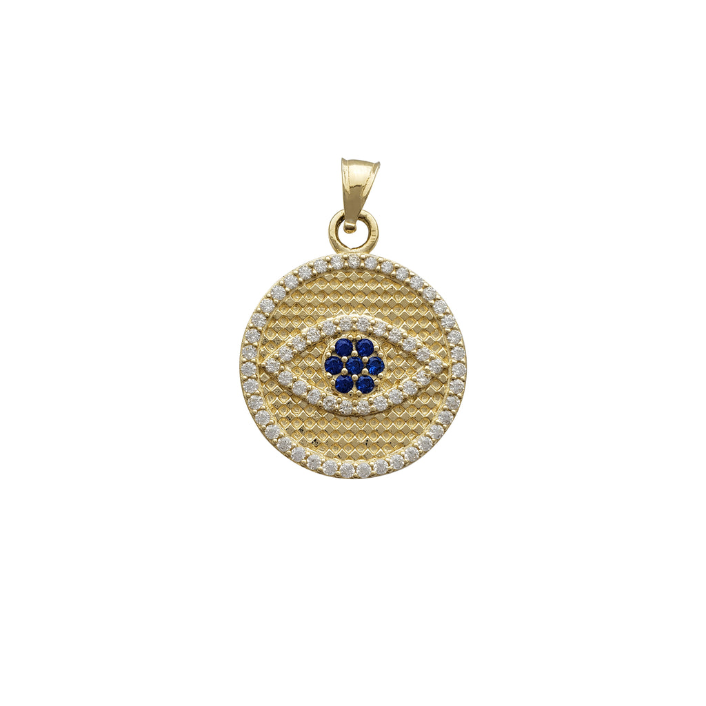 Iced-Out Evil-Eye Round Medallion Pendant (14K)