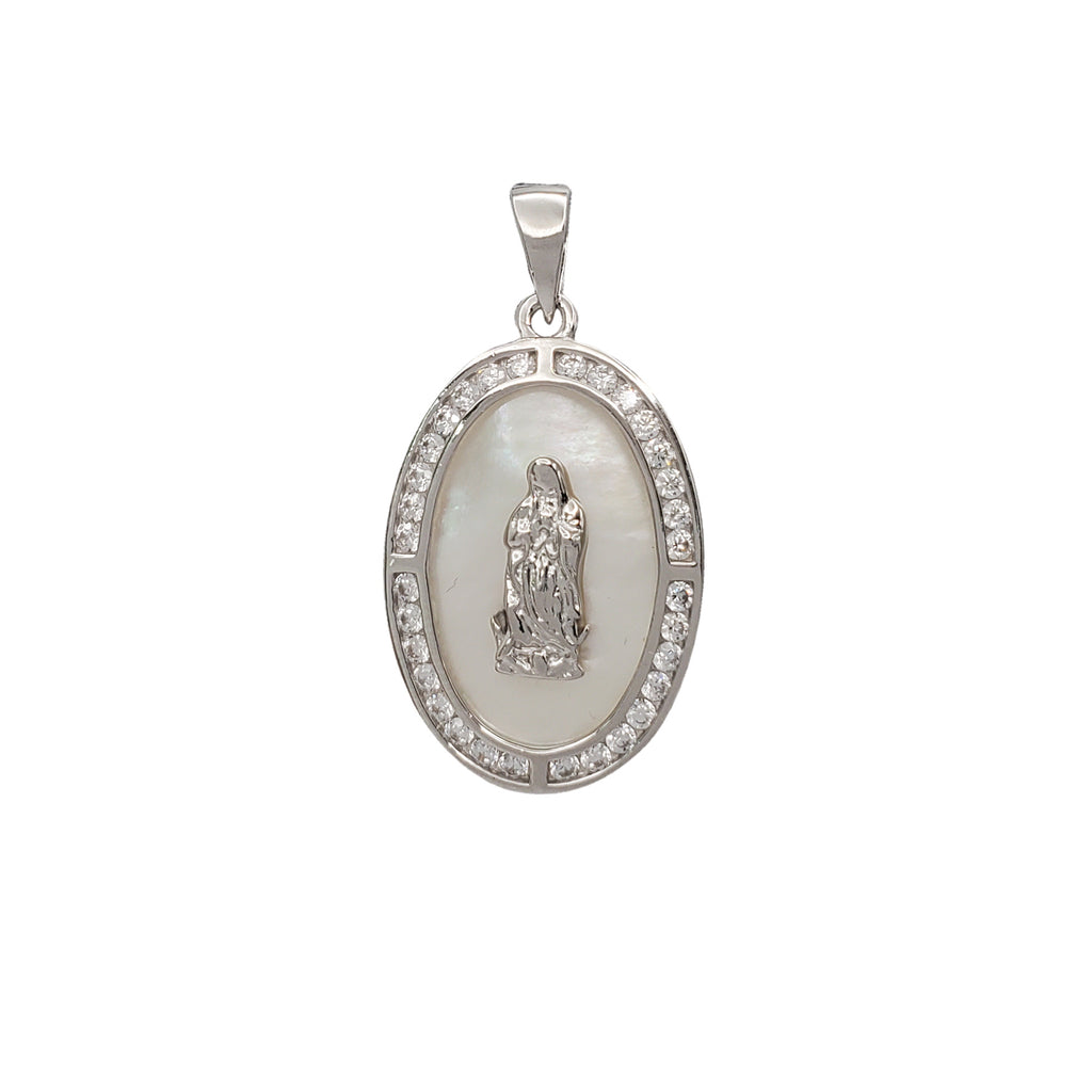 Zirconia Virgin Mary Oval Pedant (Silver)