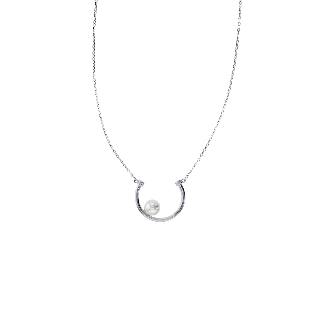 Half Circle Pearl Necklace (Silver)