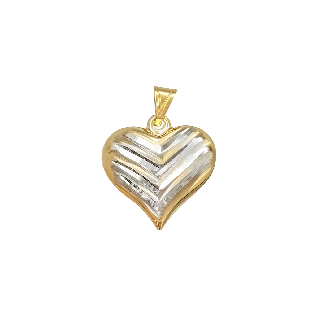 Puffy Heart Grooved Two-Tone Pendant (14K)