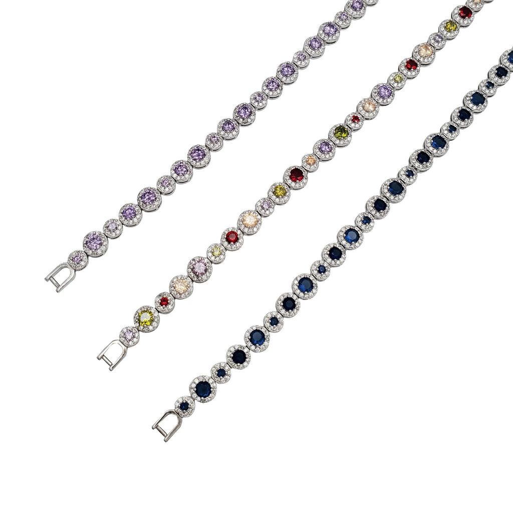Graduated Round Zirconia Fancy Bracelet (Silver)