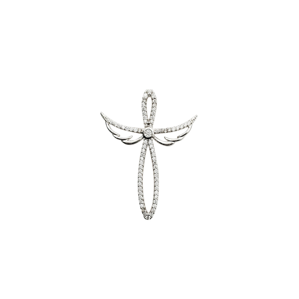 Sword Wing Cross CZ Pendant (Silver)
