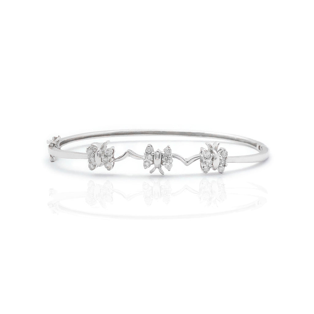 Three Butterfly Diamond Bangle Bracelet (18K)
