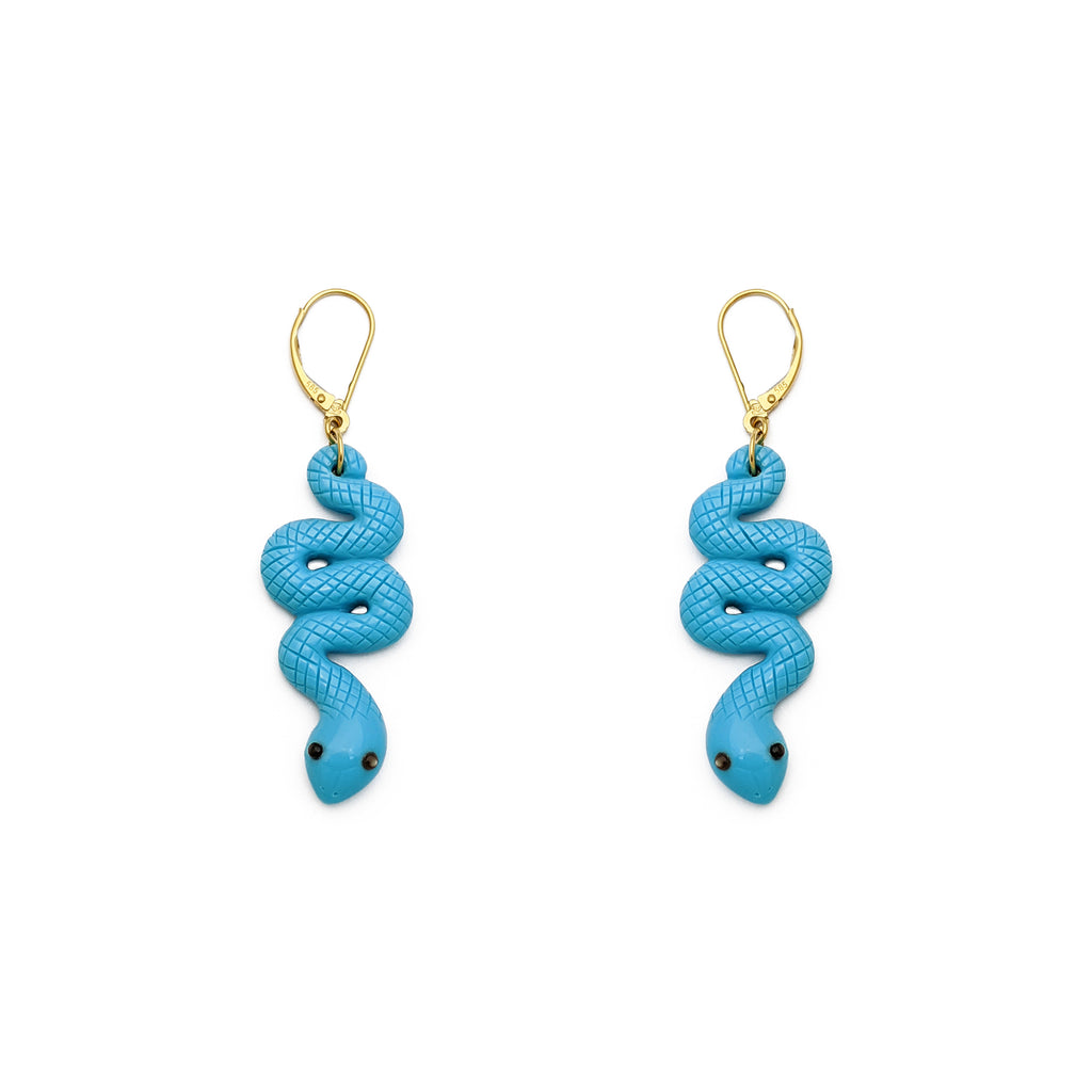 Turquoise Snake Hanging Earrings (14K)