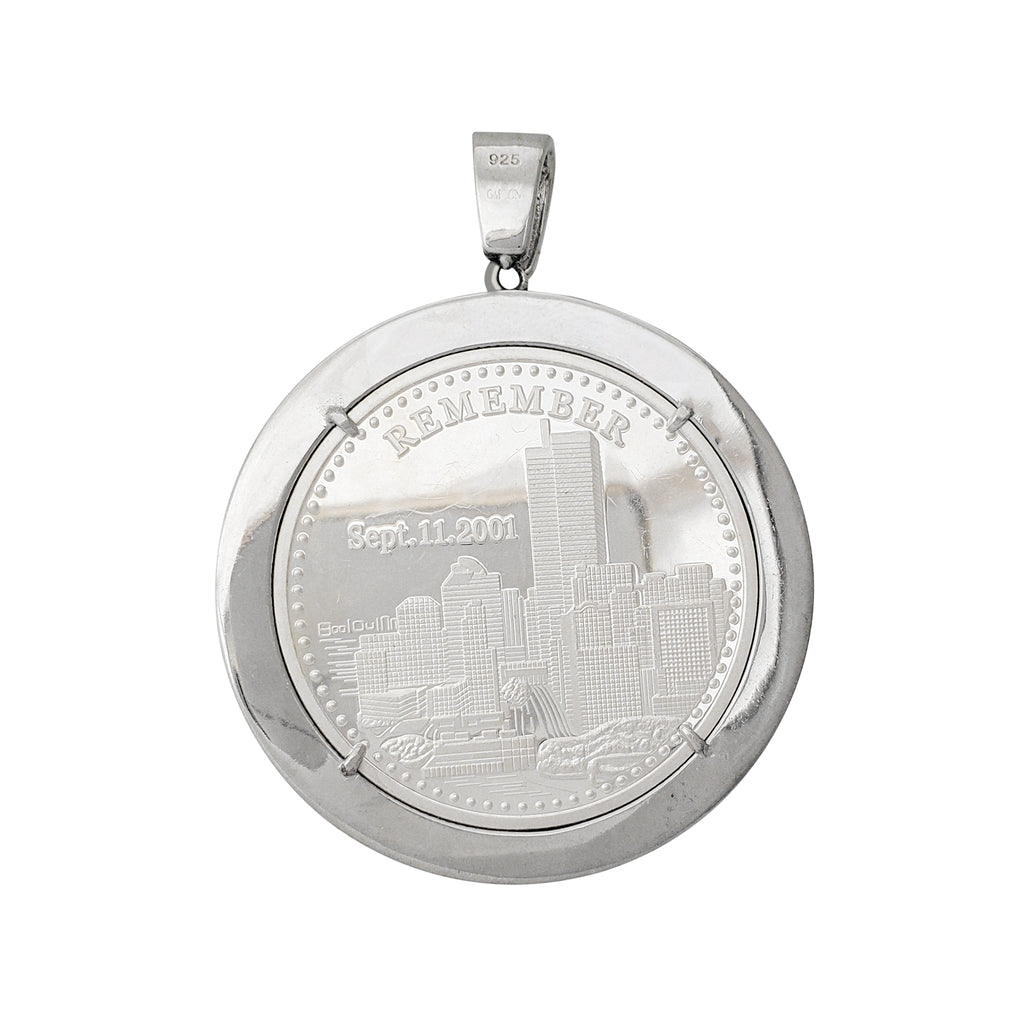 Zirconia Solid Medallion "FREEDOM" Liberty Twins Tower Pendant (Silver)