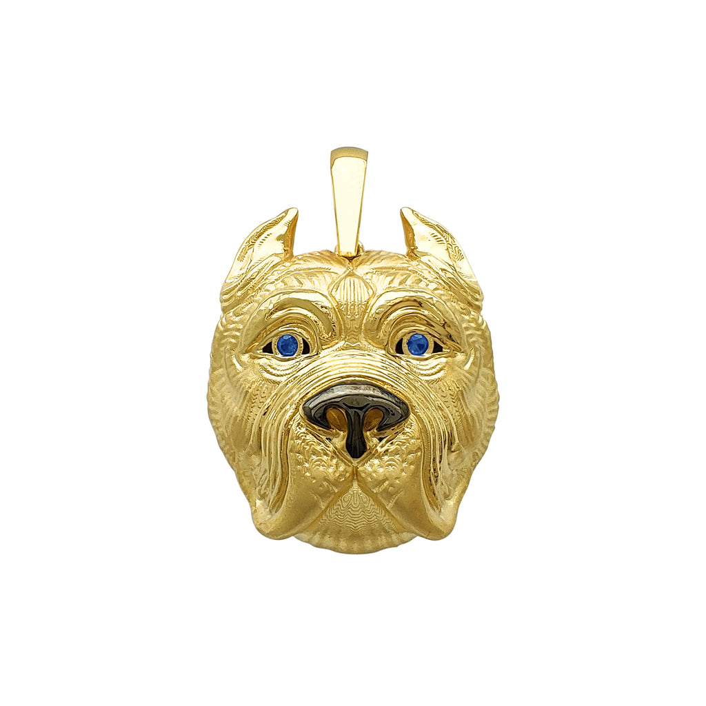 Blue-Eyes Glossy Matte Bulldog Head Pendant (14K)