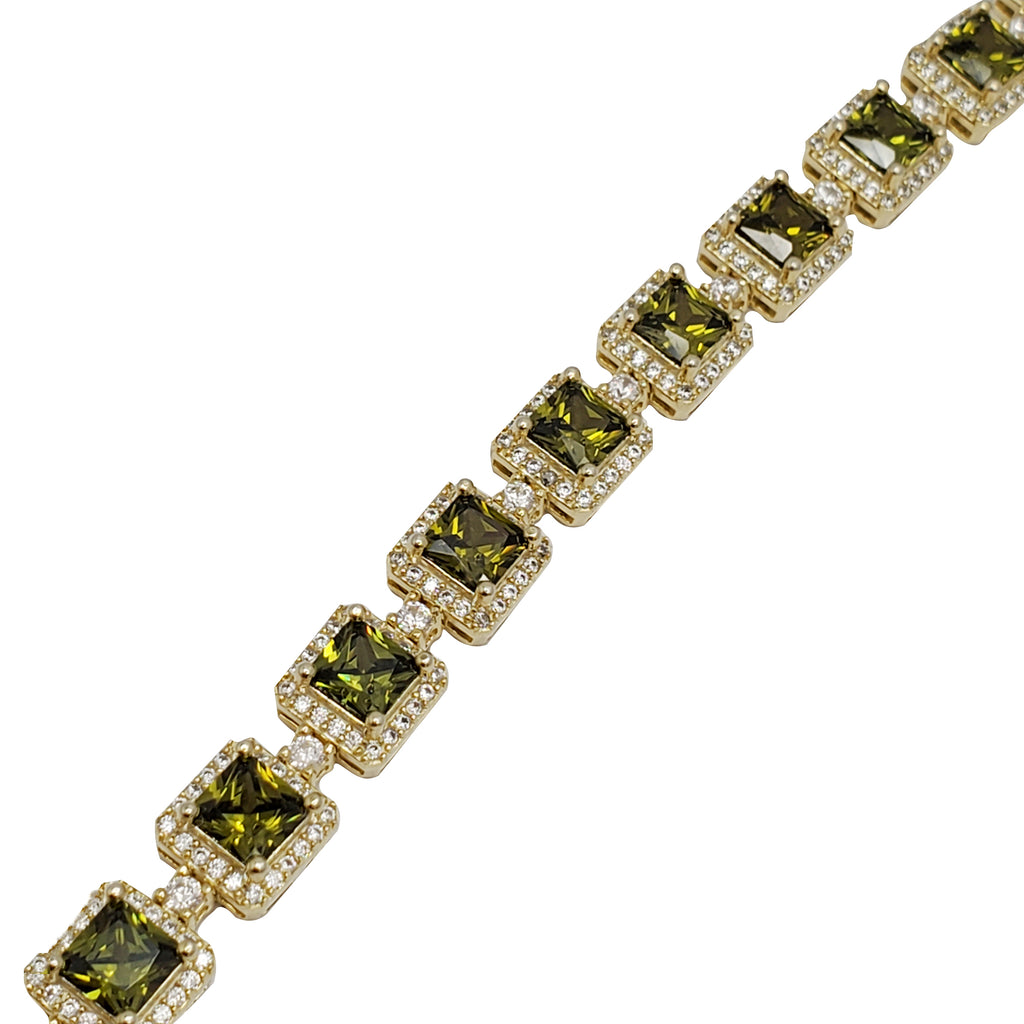 Zirconia Peridot Square Tennis Bracelet (Silver)