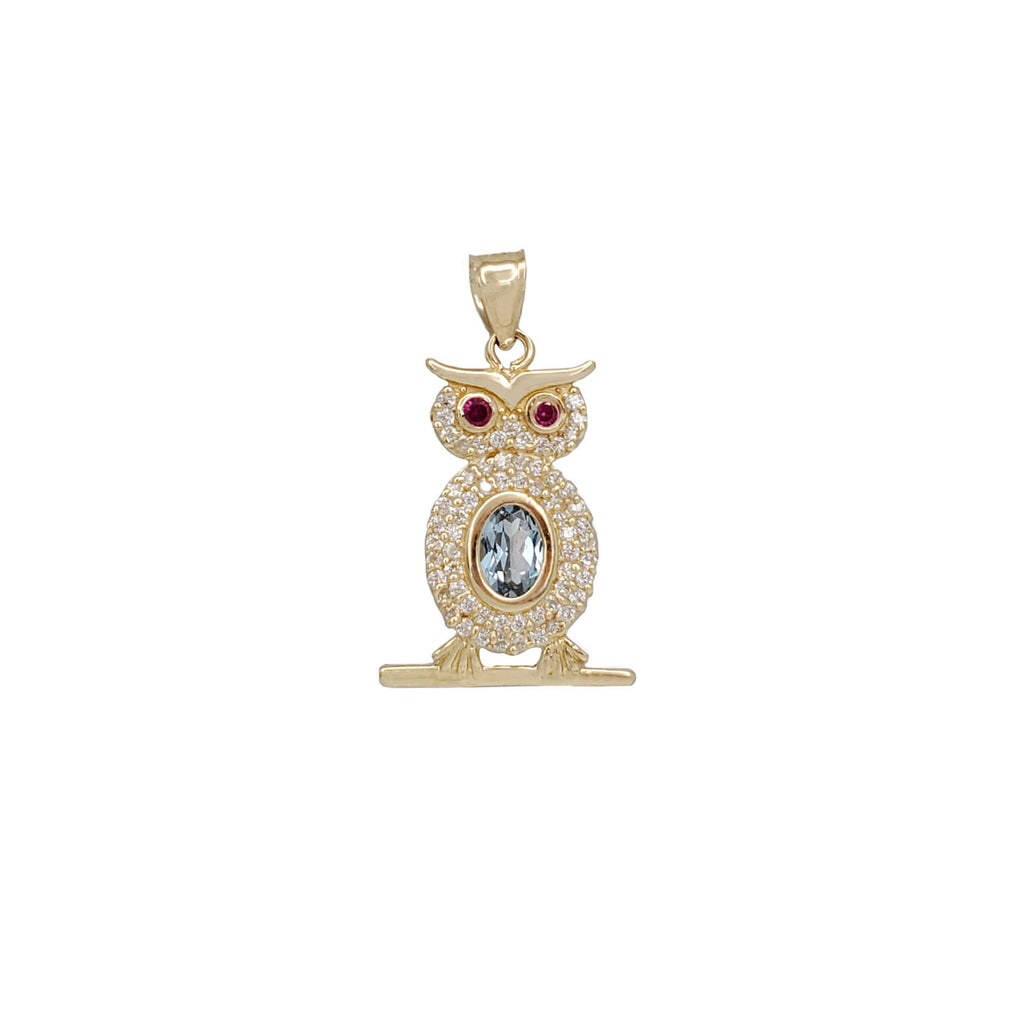Owl Color Stone Pavé Pendant (14K)