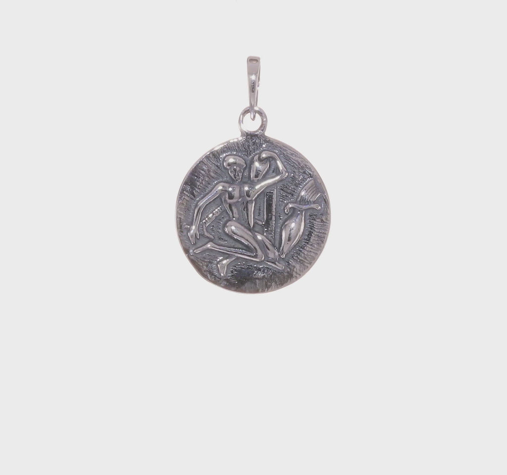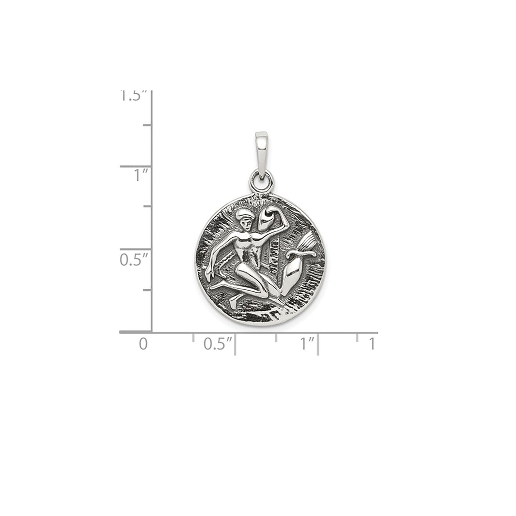 Antique-Finish Aquarius Zodiac Pendant (Silver)