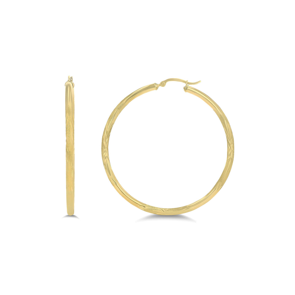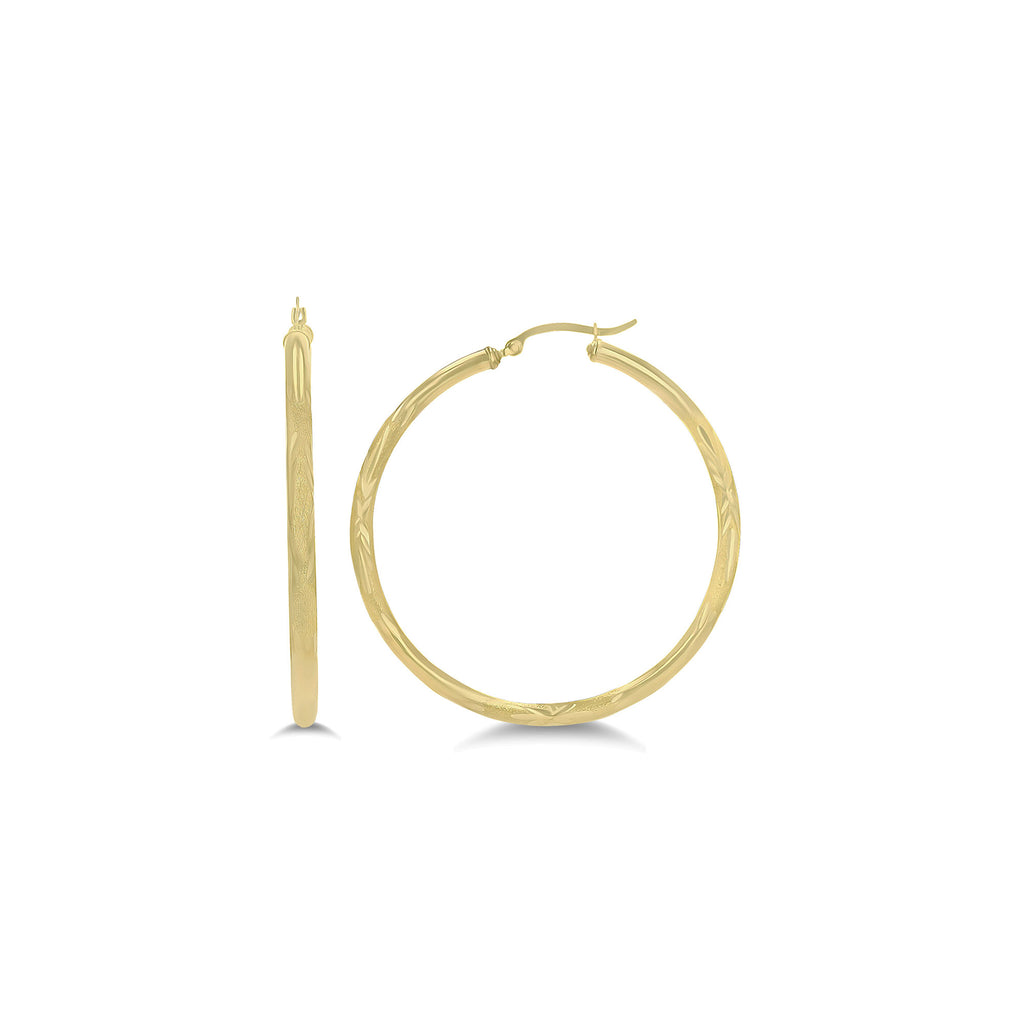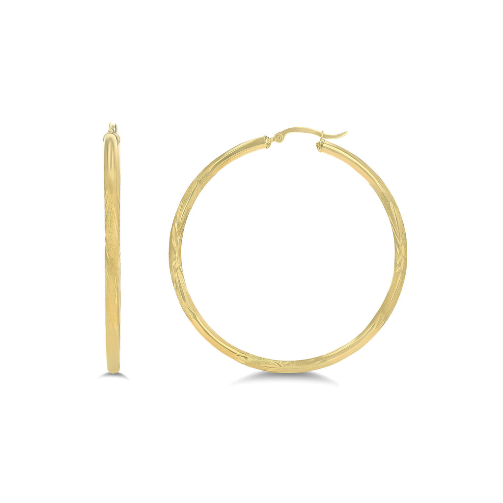 3mm Satin and Diamond-Cut Finish Hoop Earrings (14K)