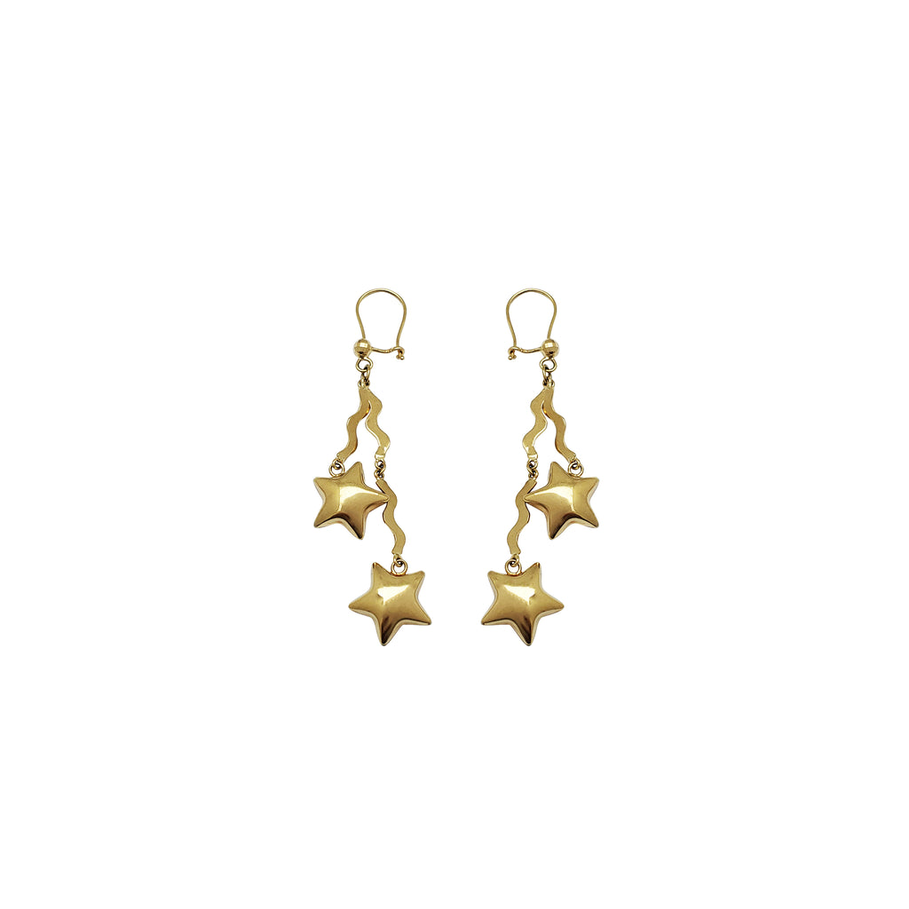 Double Stars & Streamers Dangling Earrings (14K)