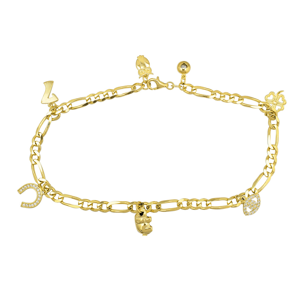 Zirconia Fancy Charms Figaro Anklet (14K)